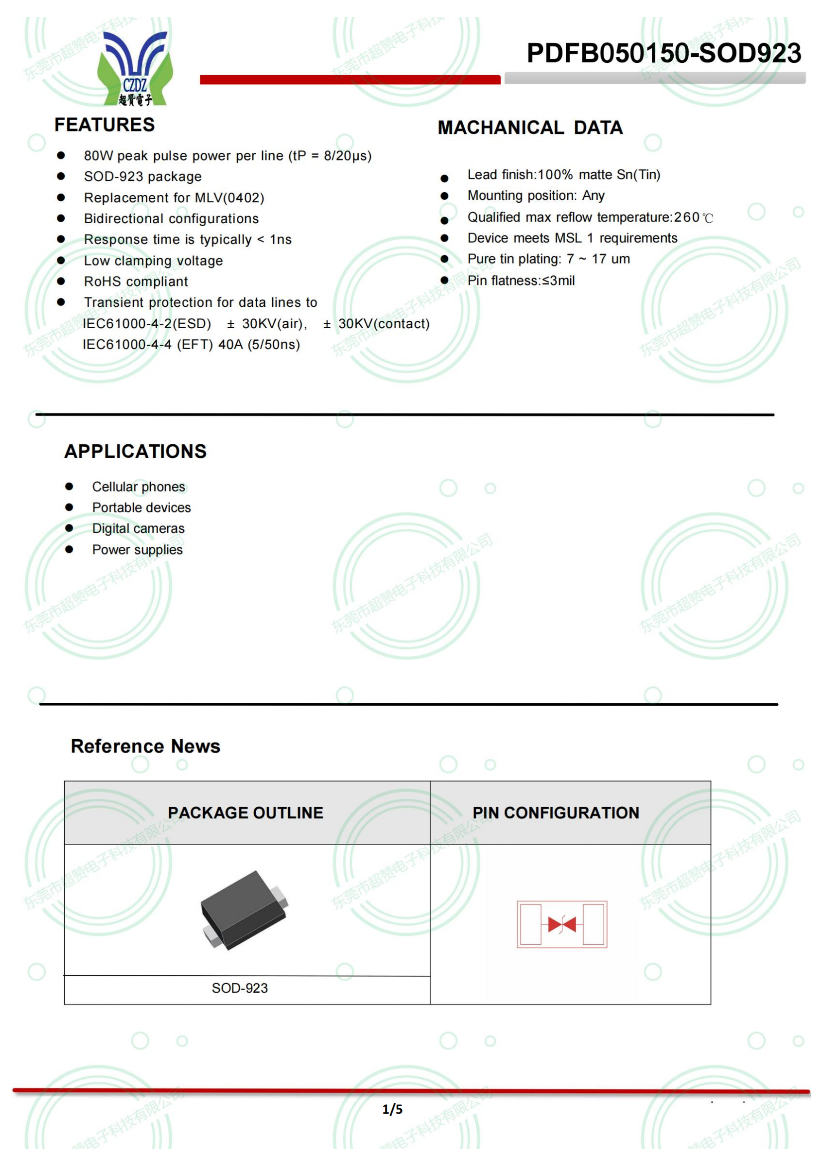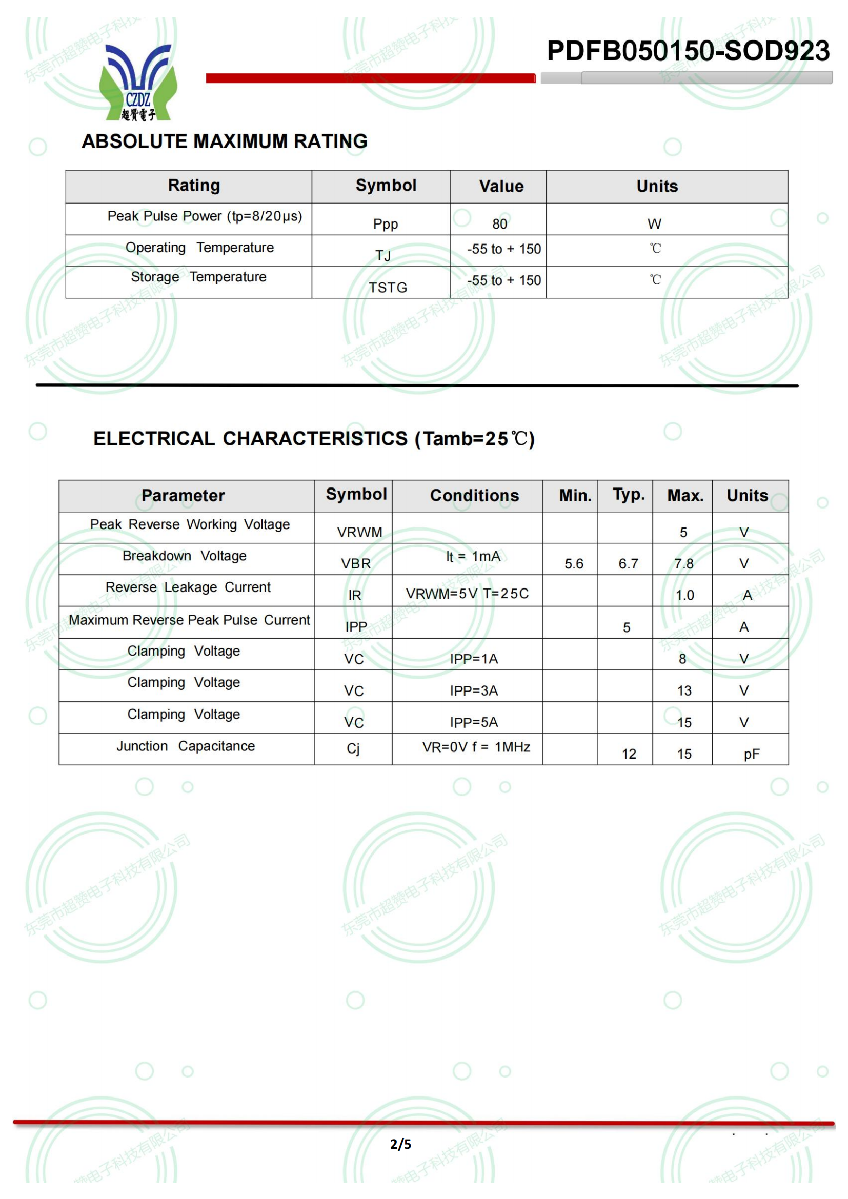 ?80W peak pulse power per line (tP = 8/20μs)